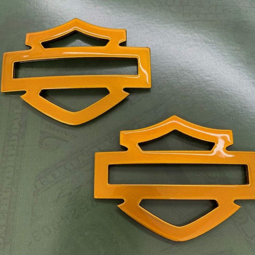 Значки Harley изогнуты, чтобы идеально соответствовать форме Harley.