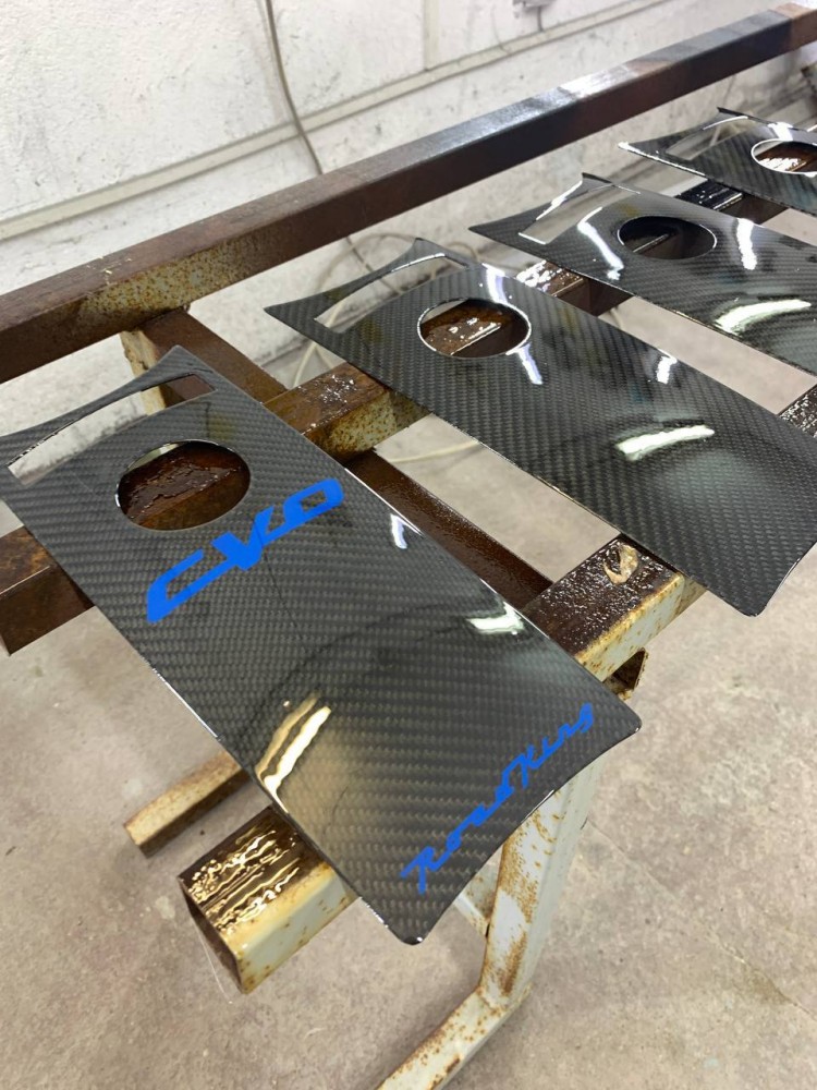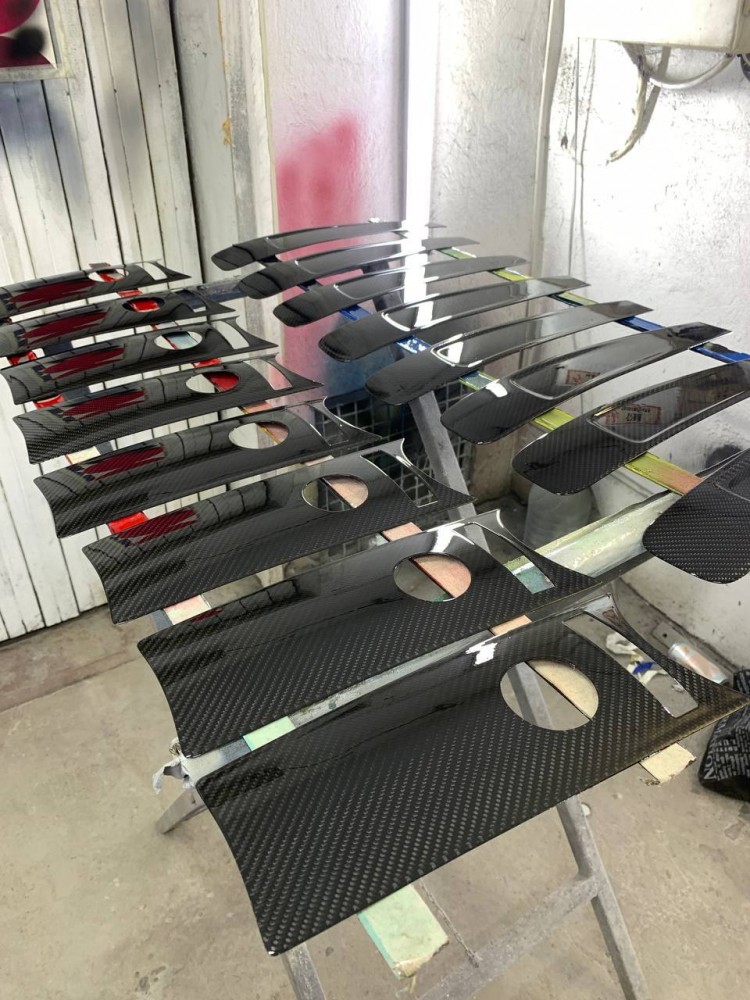Изготовлены из препрега с соблюдением всех технологических нюансов. Мы не ламинируем карбоном пластиковые детали, не используем стекловолокно/имитацию/пленки. Только 100% карбон. Финишное покрытие с защитой от ультрафиолетового излучения может быть глянцевым или матовым. Элементарно устанавливаются самостоятельно, не требуют инструментов. Возможны варианты из цветного и кованого карбона, нанесение окантовок и логотипов.